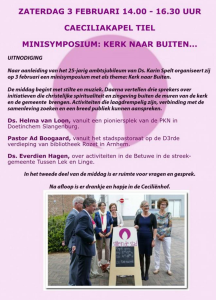 Naar aanleiding van het 25 jarig jubileum van Ds. Karin Spelt, organiseert zij 3 februari een minisymposium in de Caeciliakapel. | ||
